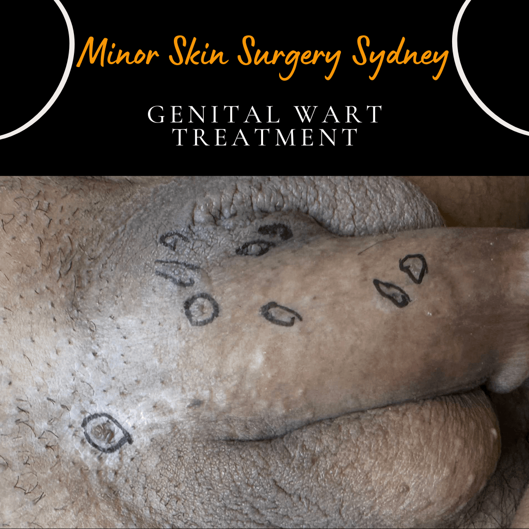 This patient presented with multiple genital warts on the pubic and penile skin for over 15 years. They have been treated on multiple occasions with various treatments. Initially, those treatments appeared to work, but then the warts recurred. We treat these conditions in our clinic. Usually only one treatment is needed deoending on the number of warts and complexity. Most treatments are provided on the same day as the consultation. Clinic locations: Chatswood • Cabramatta, NSW Phone: (02) 9411 4880 • 0433 284 880