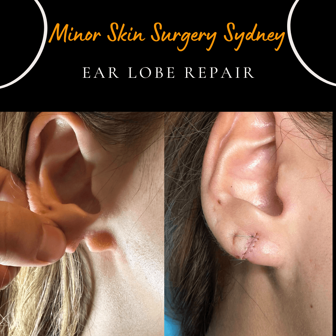 Earlobe repair was performed for a stretched earring hole under local anaesthesia. Clinic locations: Chatswood & Cabramatta, NSW Opening hours: Wednesday – Saturday | 9:00 AM – 5:00 PM Phone: (02) 9411 4880 • 0433 284 880