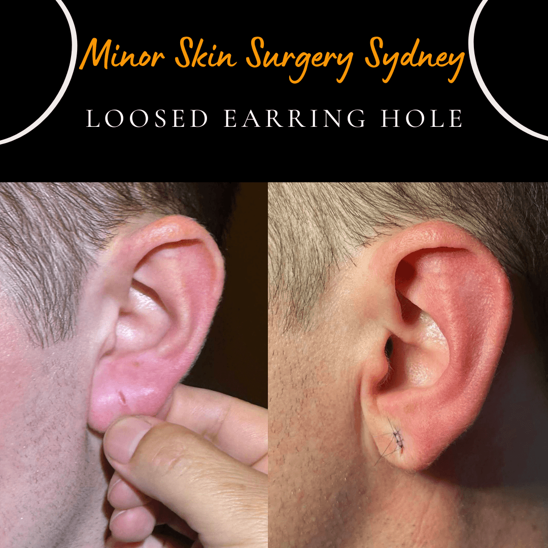 Same day correction of loose earring hole was surgically corrected under local anaesthesia. Clinic locations: Chatswood & Cabramatta, NSW Opening hours: Wednesday – Saturday | 9:00 AM – 5:00 PM Phone: (02) 9411 4880 • 0433 284 880Loose earring hole was surgically corrected under local anaesthesia on the same day as the consultation. Clinic locations: Chatswood & Cabramatta, NSW Opening hours: Wednesday – Saturday | 9:00 AM – 5:00 PM Phone: (02) 9411 4880 • 0433 284 880